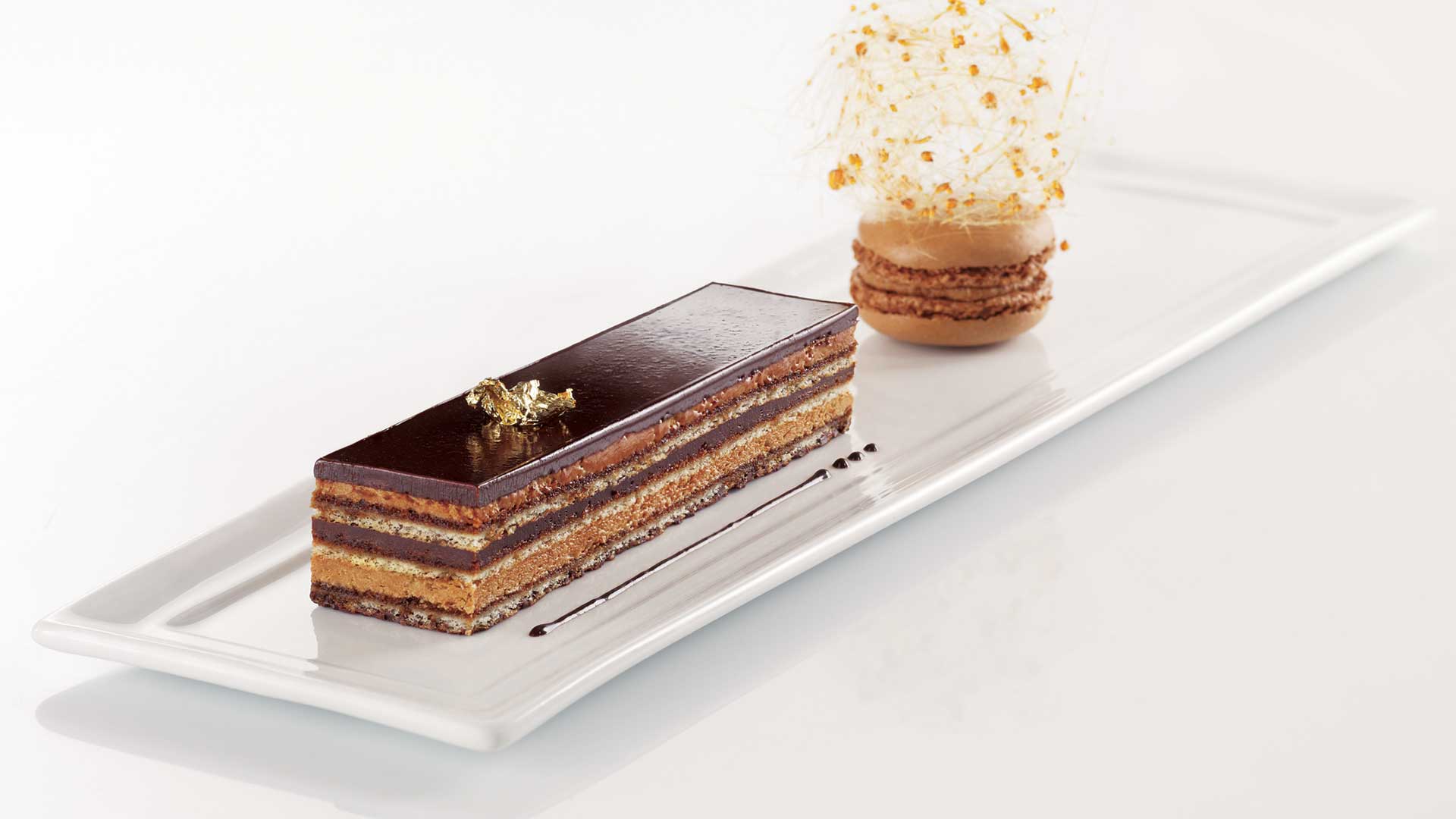 L’Opéra can be portioned for different uses: bite-sized for a cocktail party or coffee with dessert, and equally as sweet treats for a caterer’s buffet or as an appetizer alternating with a few slices of foie gras.